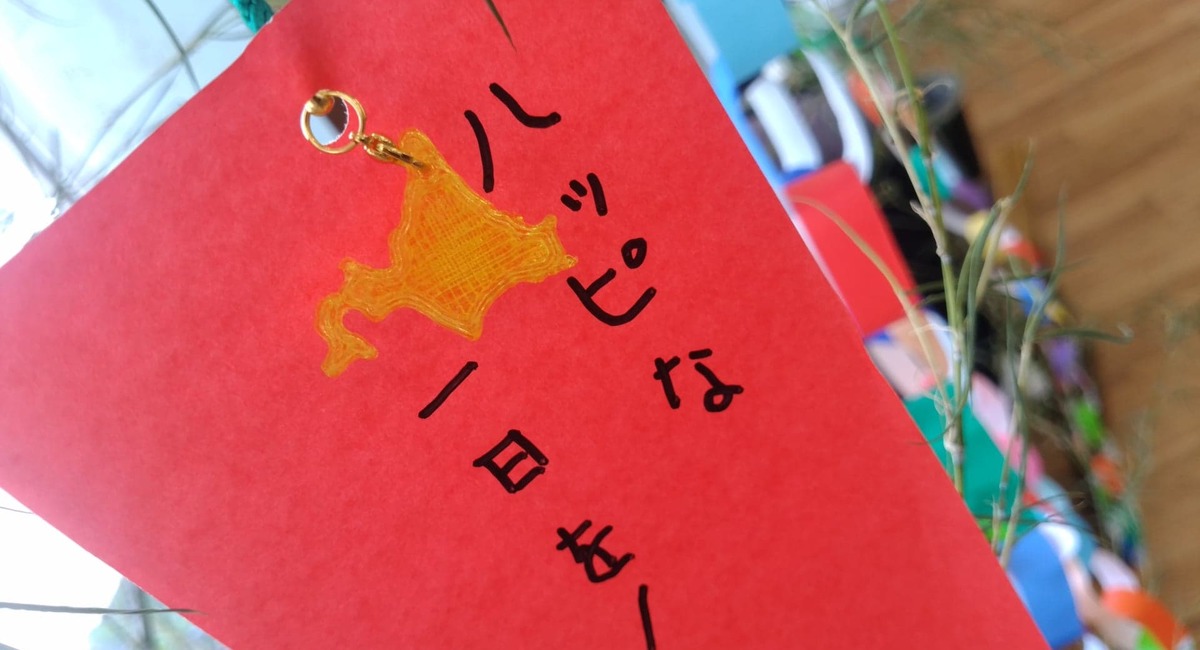3Dプリンターで作った北海道地図、七夕の短冊に
