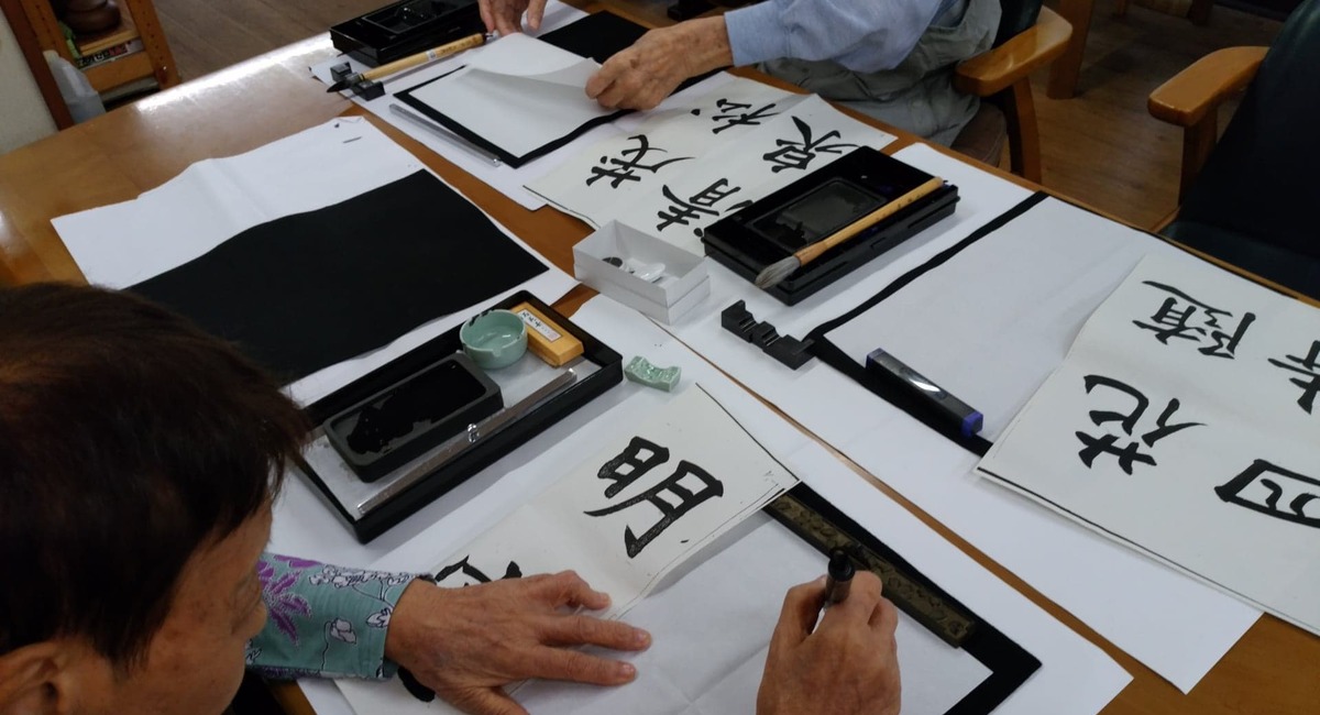 以前は行っていた趣味や、新たに興味を持ってチャレンジする「ヤル気」がおきるようです。今日は習字を4人の方が行っています。4人全員が以前から趣味でしていたワケではなく、お一人の方が「久しぶりにデイサービスに来たとき習字をやってみたい」というご要望に応じて始めたのですが、それを見ていた他の利用者さまも興味を持ち始めて、みんなで行うようになりました。