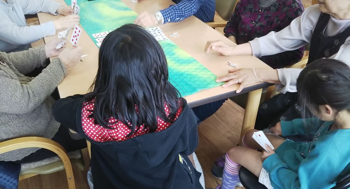 この日は、利用者さまとトランプゲーム「7並べ」をしています。自然なカタチで地域交流が行われています。